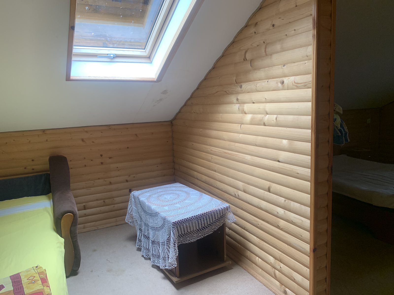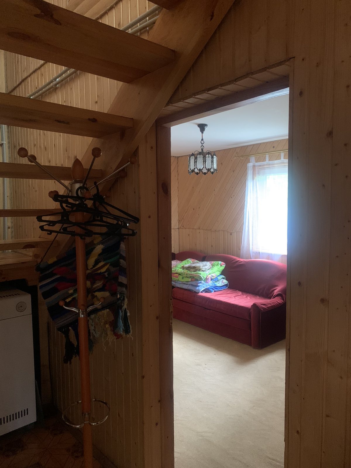Будинок, обшитий деревом з мінватою, має покрівлю з металочерепиці. Опалення відсутнє, але є твердопаливний котел, проте не встановлені батареї.